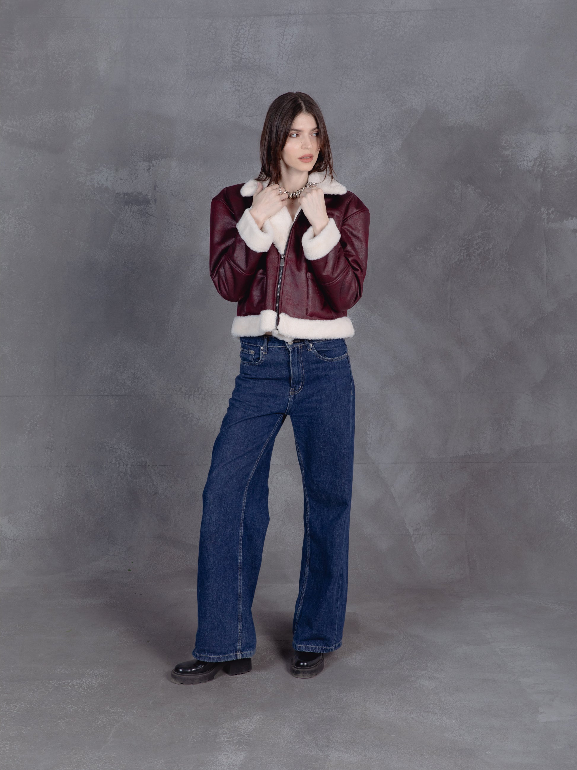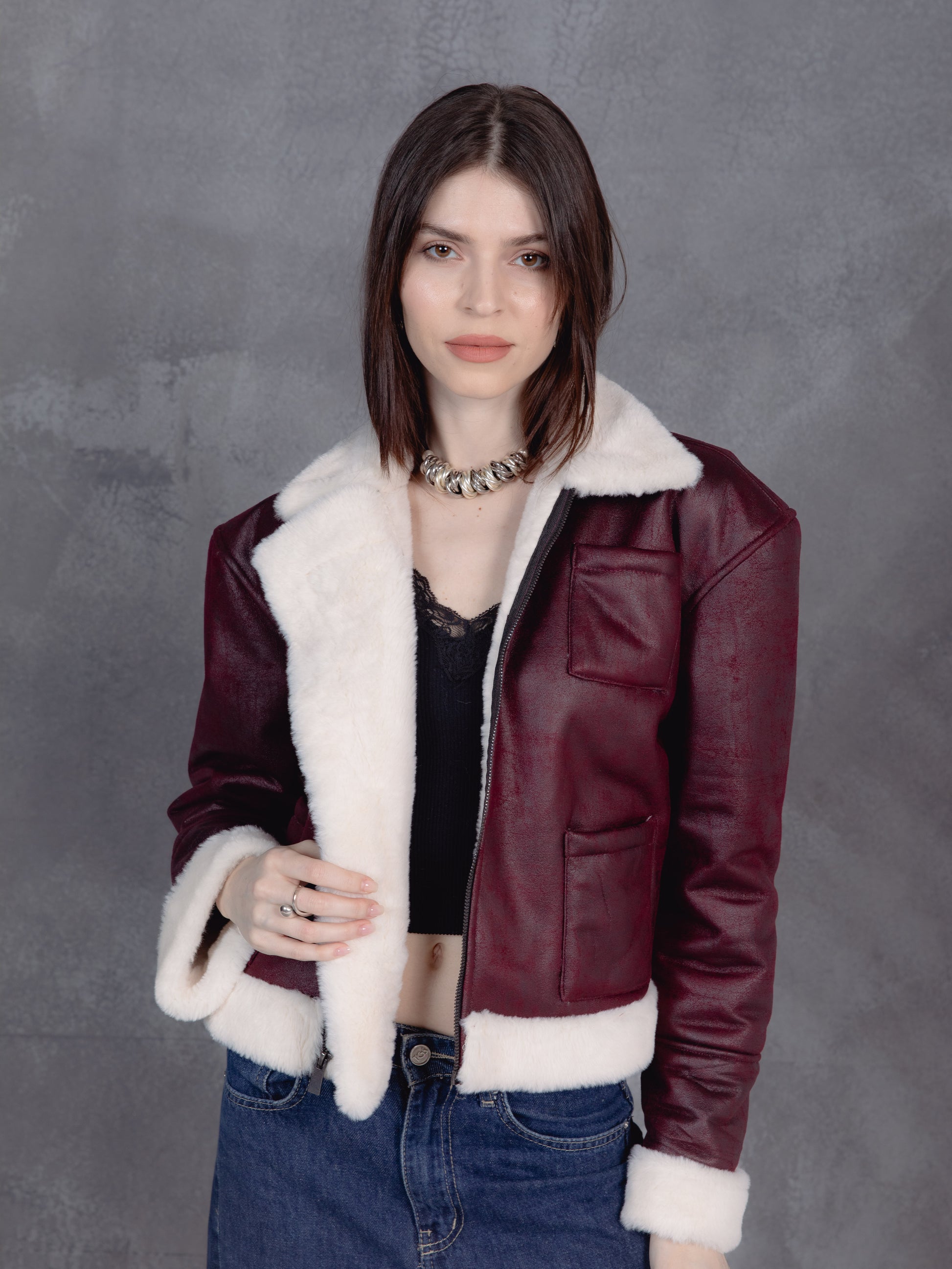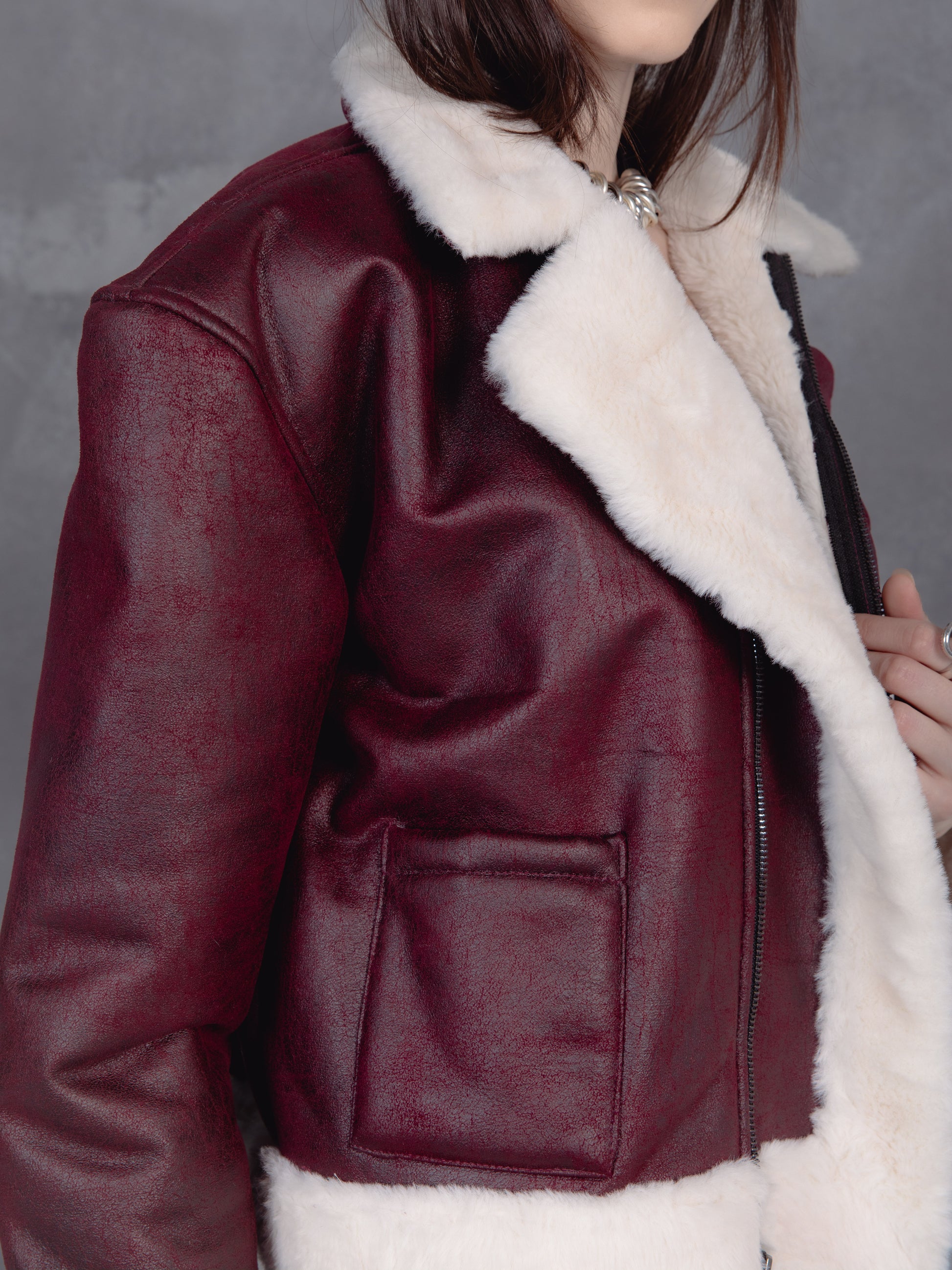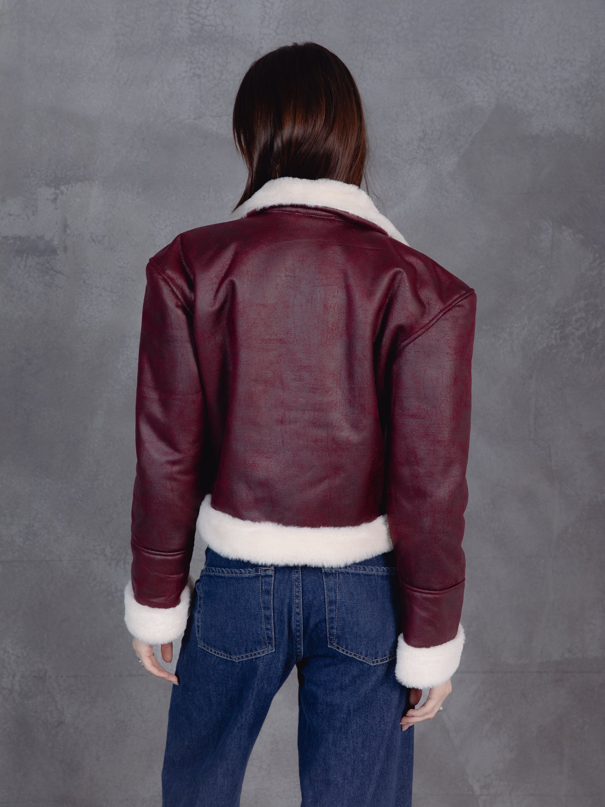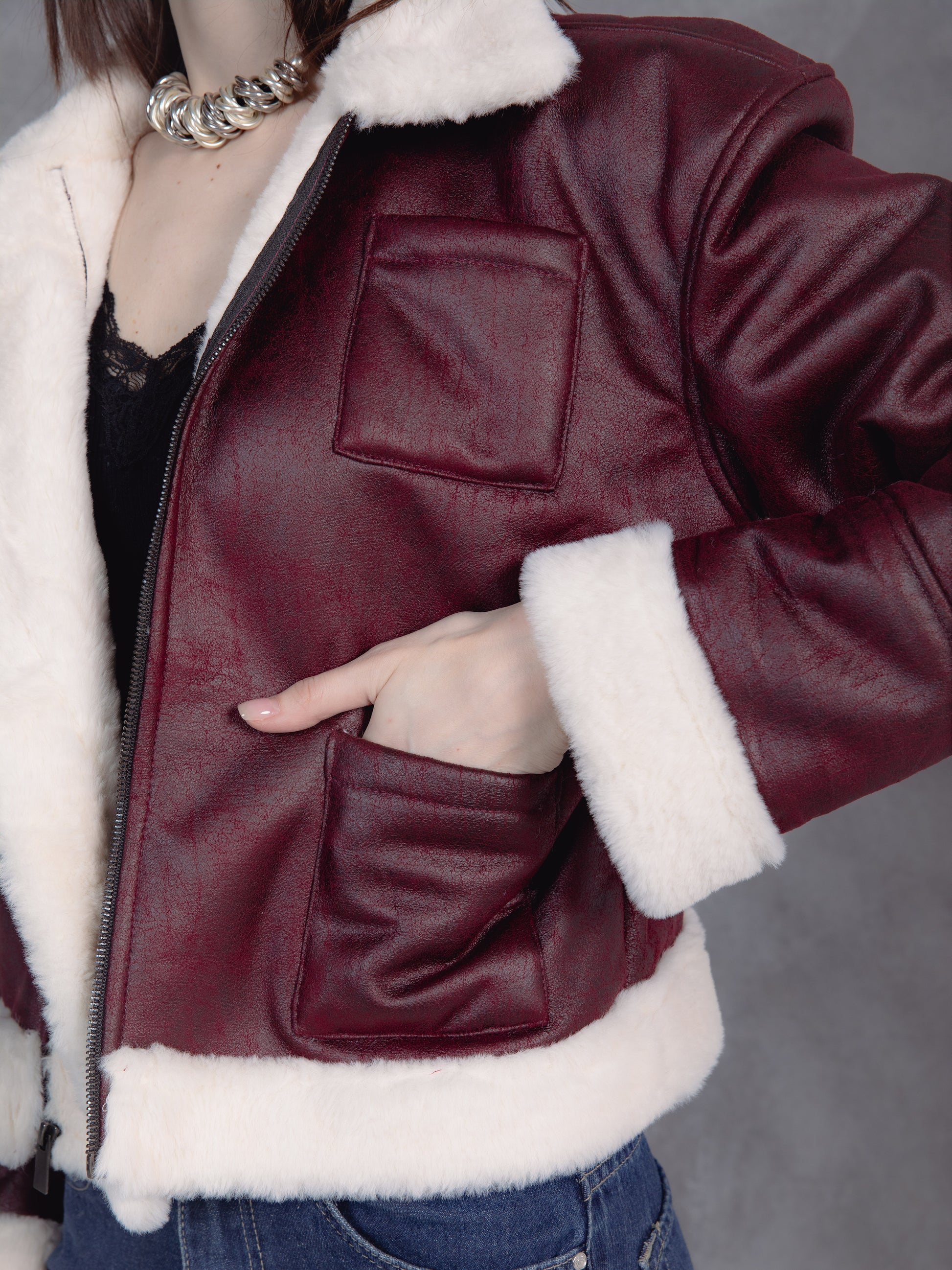 Edged in plush white fur, blending biker grit with winter luxe. The structured silhouette and gold accents elevate its cold-weather charisma. A statement piece that commands attention—warmth with attitude