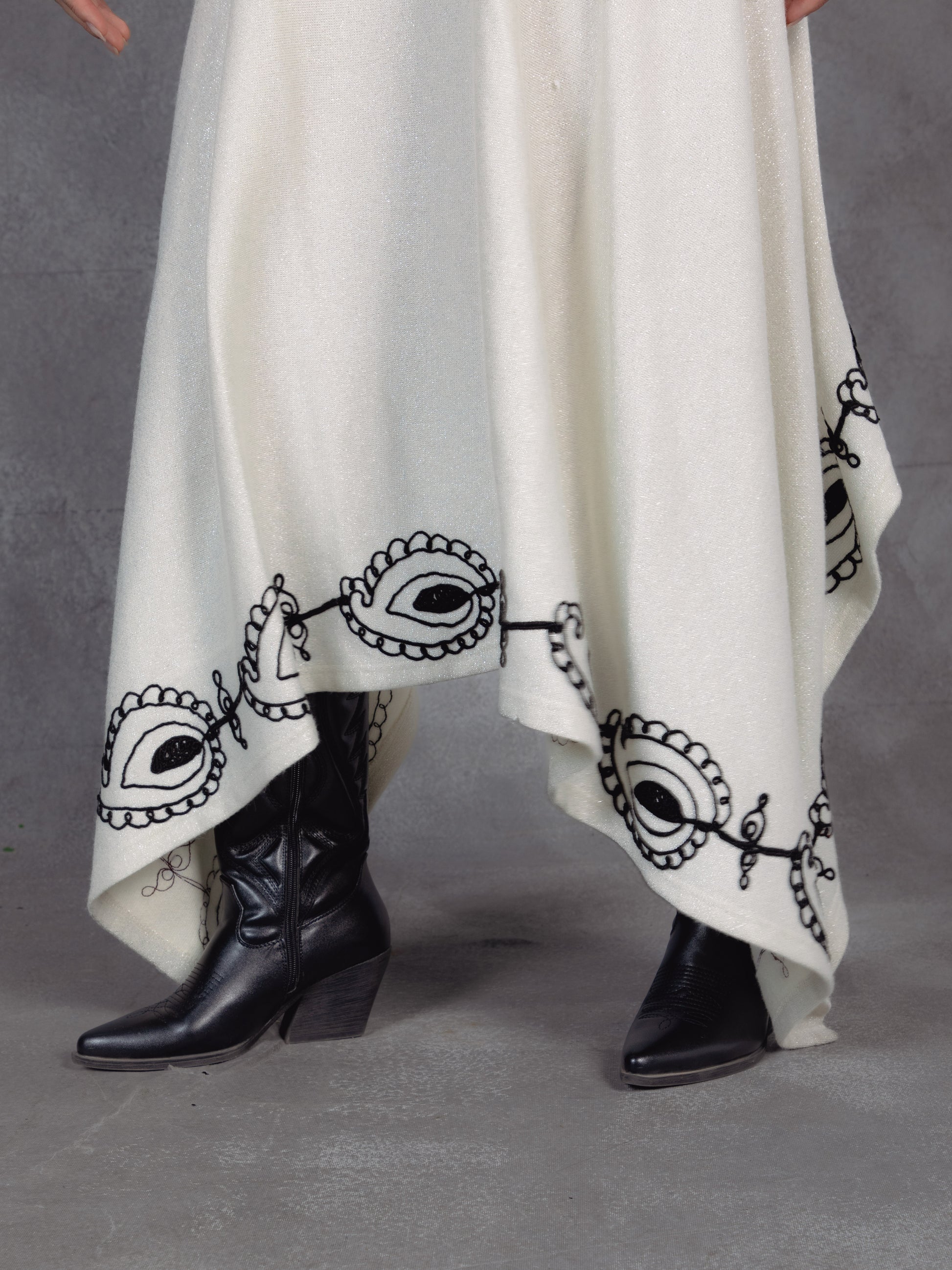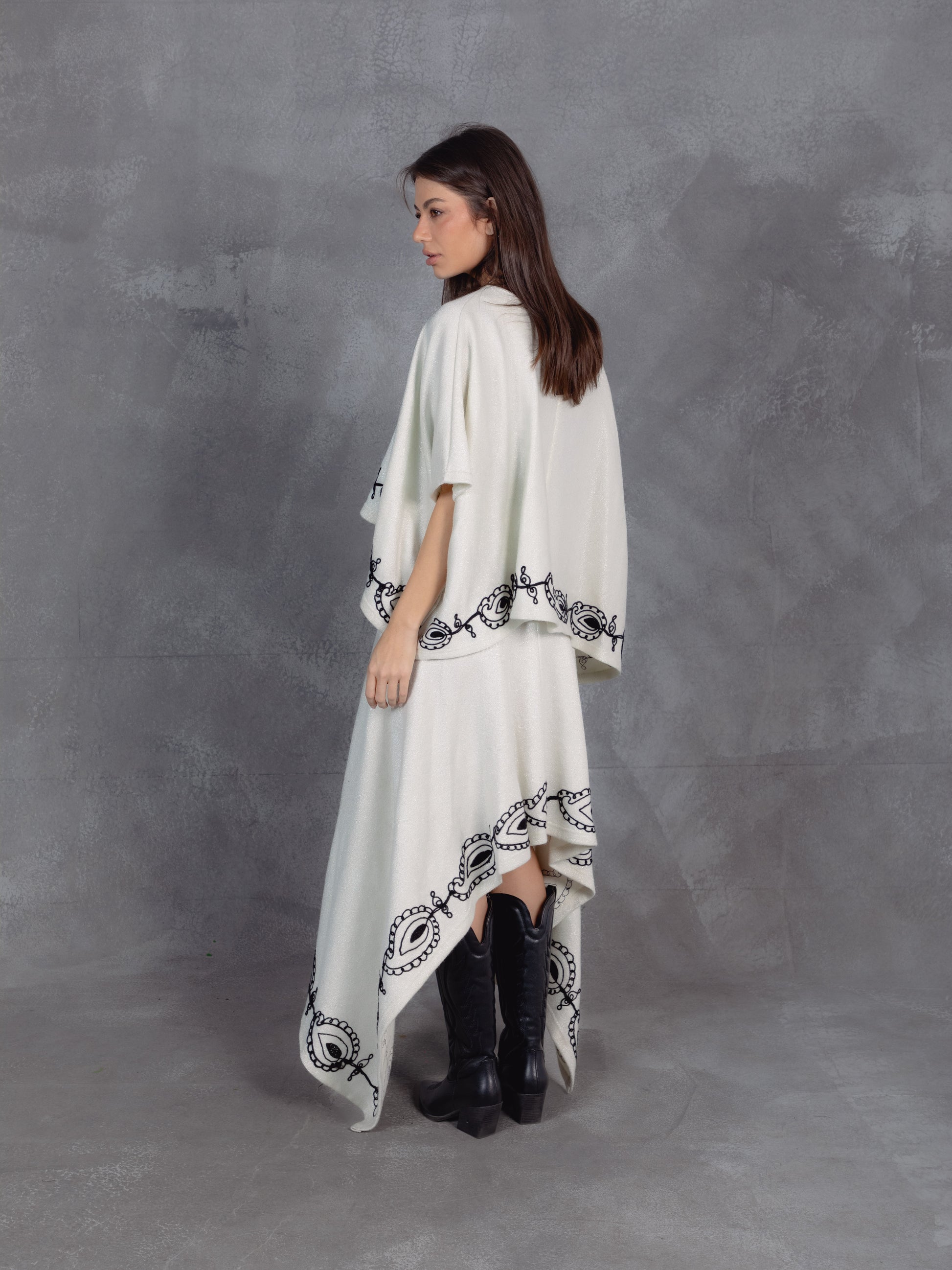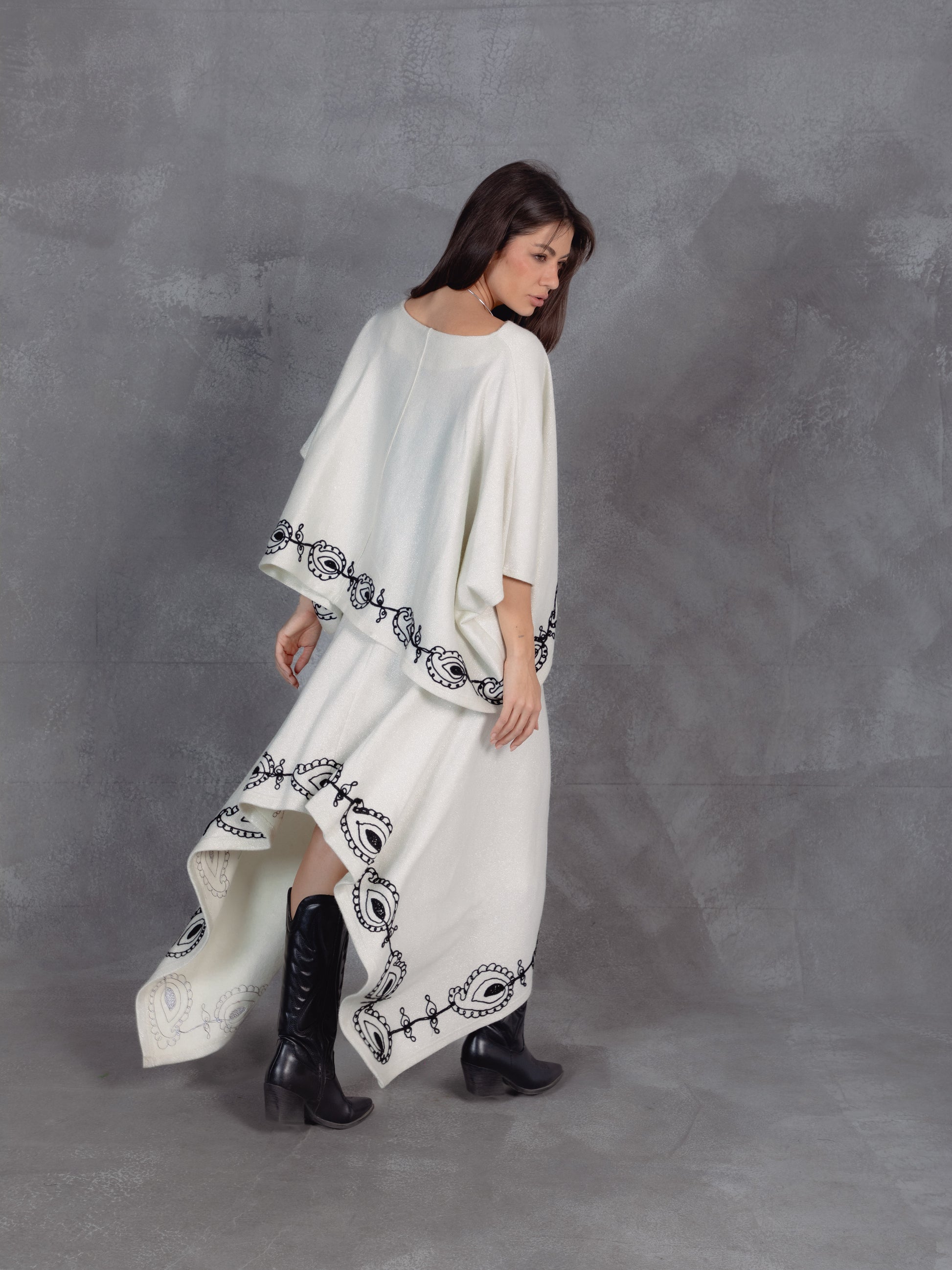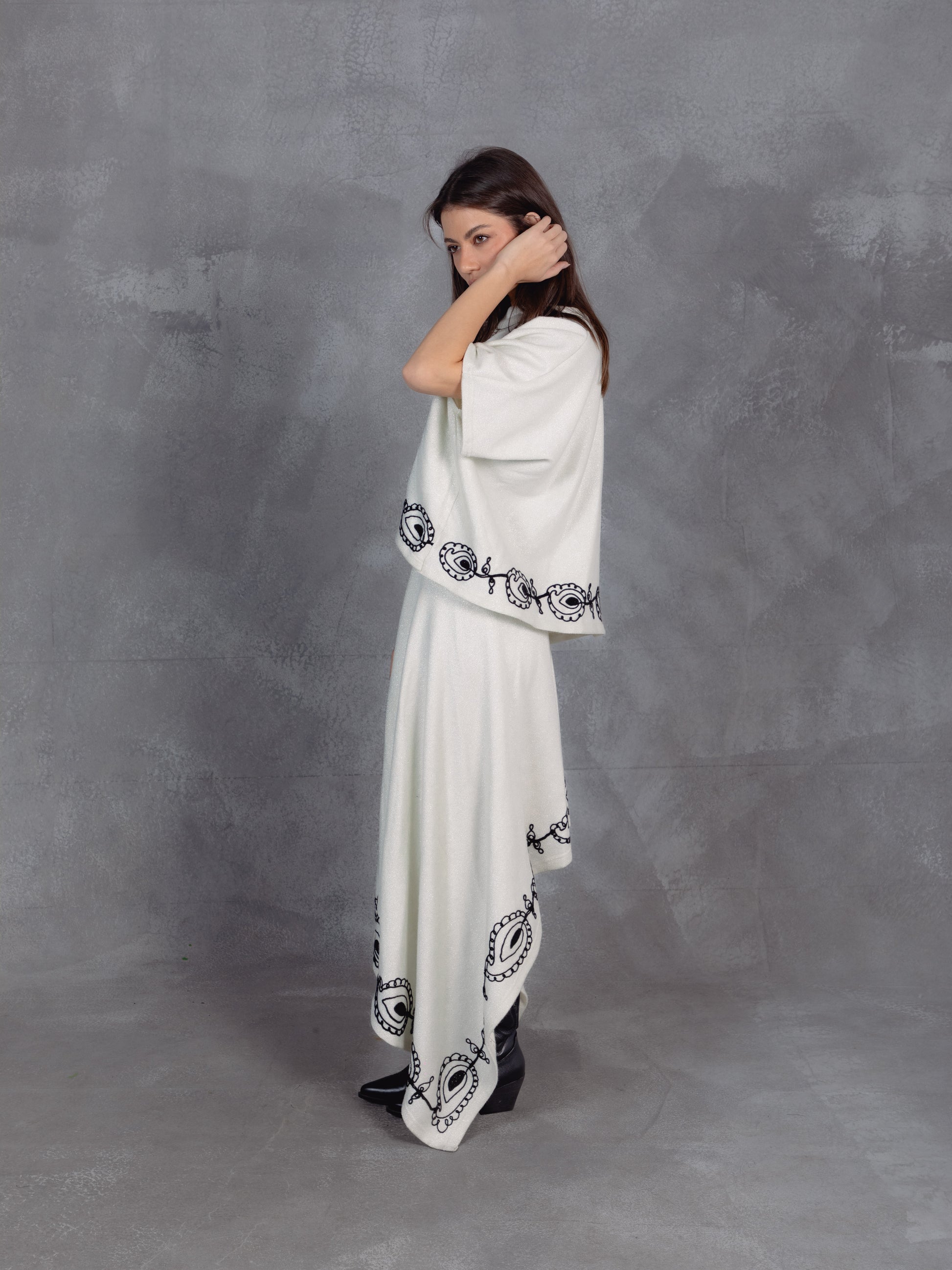 Poetic blend of tradition and minimalism, this white ensemble flows with quiet elegance.