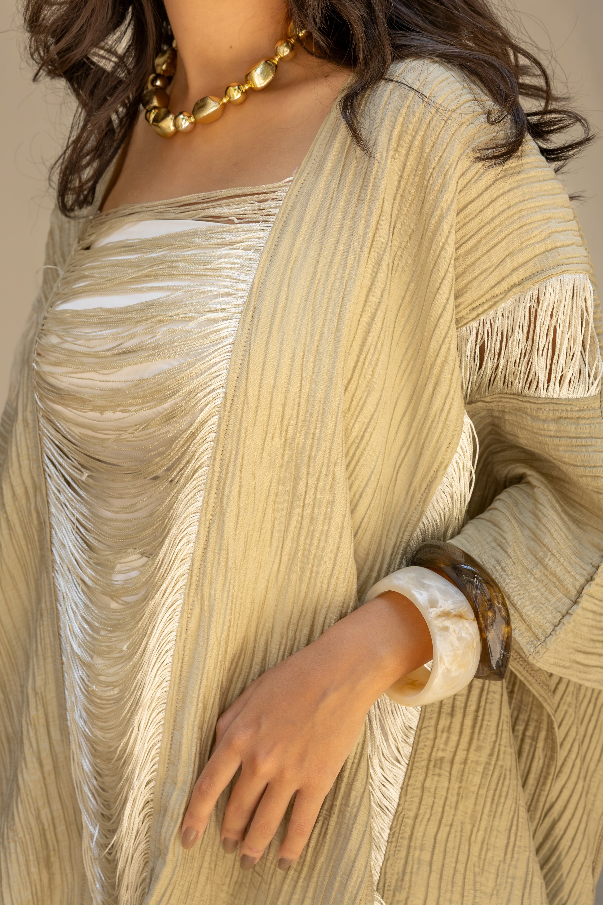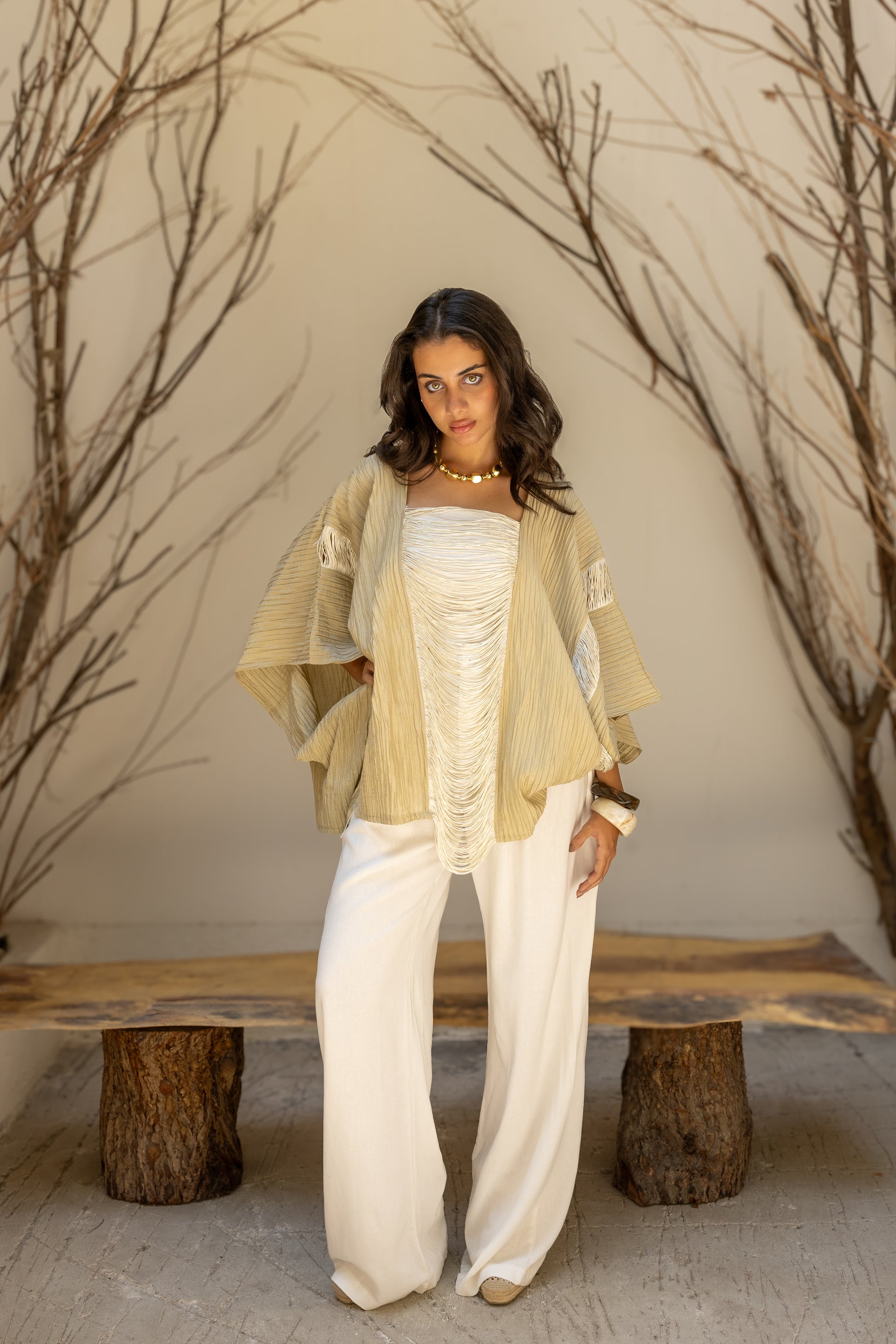 A symphony of warm tones and artistic geometry, this blouse captivates with its vibrant, expressive print